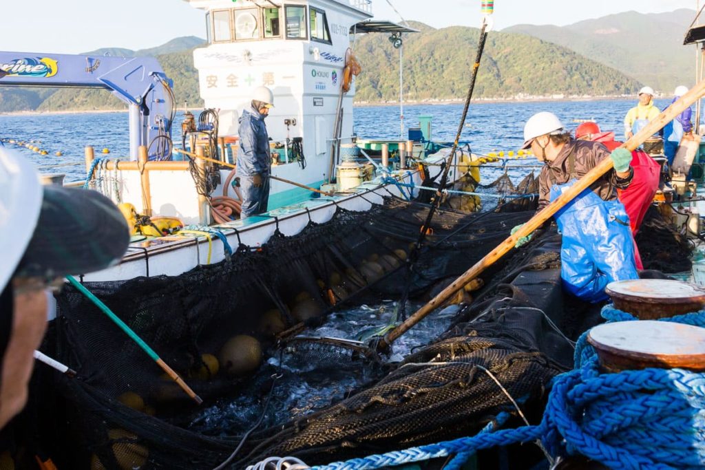 一方で室戸の美味しいお魚の秘密はその海中地形にあります。室戸岬より東側(徳島側)の沿岸部では、陸地から2~3kmいくと、急激に1000mの深さまで落ち込み、崖ができています。海中を巡る深海からの冷たい栄養豊富な深層水がその海中の崖にぶつかり、自ら表層まで沸き上がってきます。ですから陸地から非常に近いところで深海魚も含めた多様な魚種があがります。栄養豊富な漁場として、全国的にも有名です。陸地から近いので、朝どれのお魚が新鮮なままその日のうちに食べられるんです。